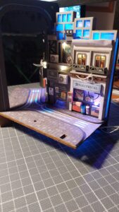 Alles in Allem, war das natürlich eine ziemliche Fuzlerei, aber es hat Spaß gemacht und mich doch lange in Beschlag genommen – jeden Abend ein wenig dran gearbeitet. Fehler wurden gemacht, Lösungen dafür gefunden und in Summe bin ich mit dem Ergebnis sehr zufrieden. Ich habe zwar noch ein zweites Book Nook im petto, aber gleich nach dem ersten brauche ich ein wenig Abstand 😉