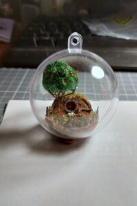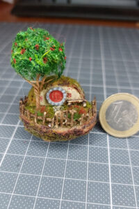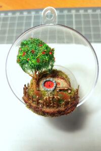 Was schenkte man der besten Bürokollegin, die ausgefallenen Christbaumschmuck und LOTR liebt? Eine Hobbithöhle in einer Christbaumkugel. Ich glaube das ist das Kleinste, was ich in diesem Detailgrad jemals gemacht habe.